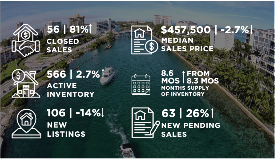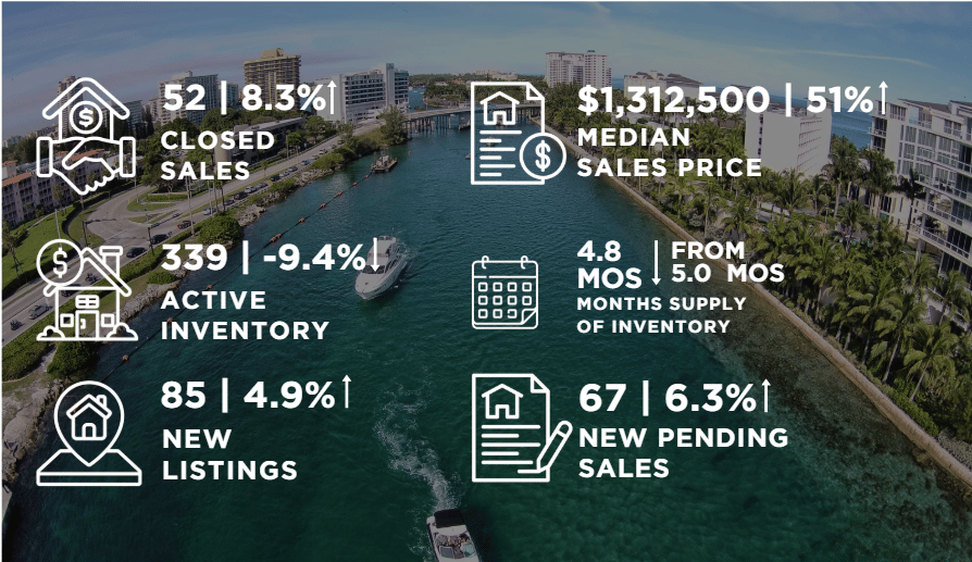 Single-family homes in Boca Raton continue to benefit from tight inventory and strong demand, driving a substantial year-over-year increase in median pricing. The decline in available homes and a sub-5-month supply signal ongoing seller leverage, while rising pending sales indicate sustained buyer confidence at higher price points.