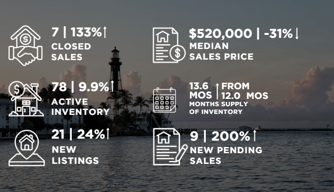 Buyers displayed renewed confidence in the townhouse and condo sector, with sales volume increasing and pending contracts more than tripling. Although prices dipped, expanded inventory offers opportunities for buyers seeking the Hillsboro Beach lifestyle.