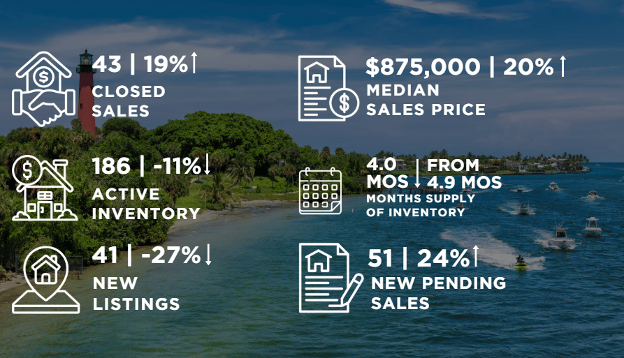 Single-family homes in Jupiter saw steady buyer demand with rising prices and reduced inventory. With fewer new listings entering the market, competition among buyers remained elevated, pushing pending sales higher and keeping supply levels tight.
