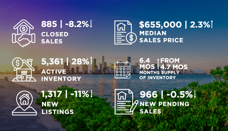The Miami-Dade housing market continues to reflect the effects of higher inventory and slower buyer activity. Single-family homes held pricing strength despite fewer sales, suggesting steady demand for well-located properties. In contrast, the townhouse and condo segment is experiencing stronger headwinds, with a sharp rise in months’ supply and fewer pending contracts. Buyers now have greater negotiating leverage, while sellers face a more competitive environment that rewards strategic pricing and well-prepared listings.