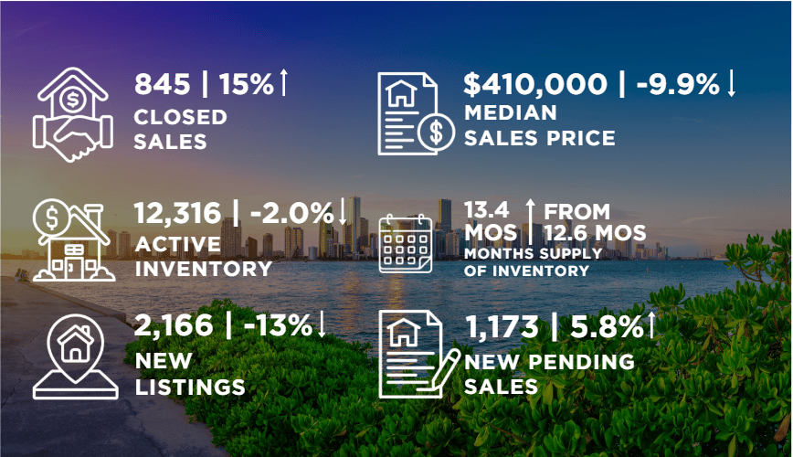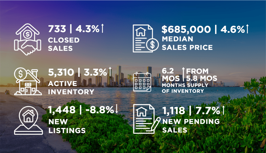 The single-family home market in Miami-Dade County showed steady momentum in February 2026. Closed sales reached 733, up 4.3% from a year ago, while the median sale price climbed to $685,000, a 4.6% increase year over year. Buyers are clearly still active, as new pending sales jumped 7.7% to 1,118. Active inventory grew 3.3% to 5,310 homes, and months supply of inventory rose to 6.2 months, up from 5.8 months a year ago. New listings dipped 8.8% to 1,448, suggesting sellers are a bit more cautious, even as demand continues to hold firm.